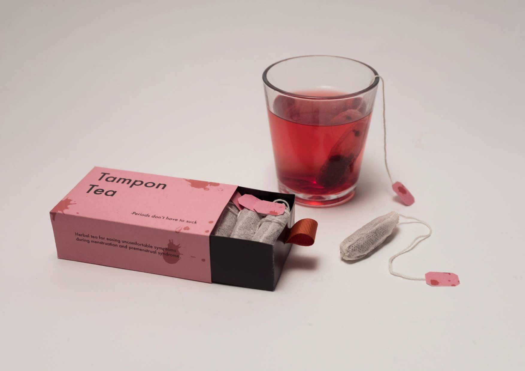 Periods suck. But we can’t live without them, so to make them less aggravating and more fun, I created Tampon Tea. It contains hibiscus leafs, because of it’s easing effect when the cramps are at their worst.. and because of it's color.